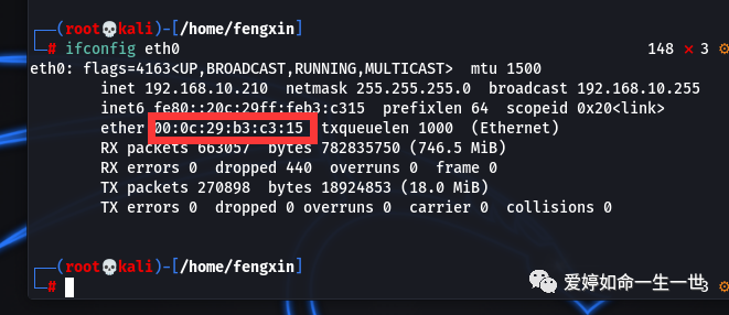 查看我本机网卡的mac地址是:00:0c:29:b3:c3:15