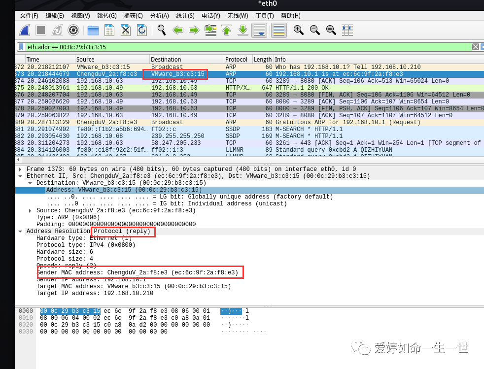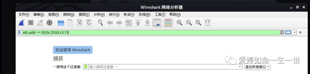 在抓包工具中,用过滤的命令,只抓取本机的mac地址