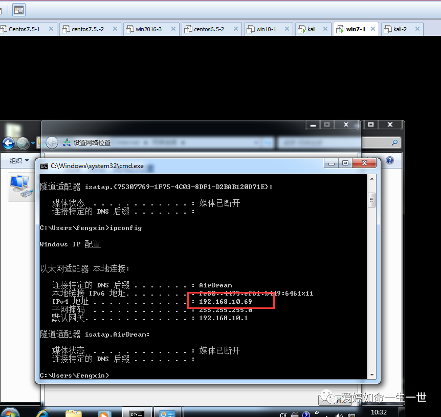 再次站在win7用户上查看网关的Mac地址发现变成了攻击者的mac