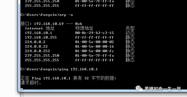 站在系统中,尝试ping一下自己的局域网的网关IP地址,让其形成arp缓存表