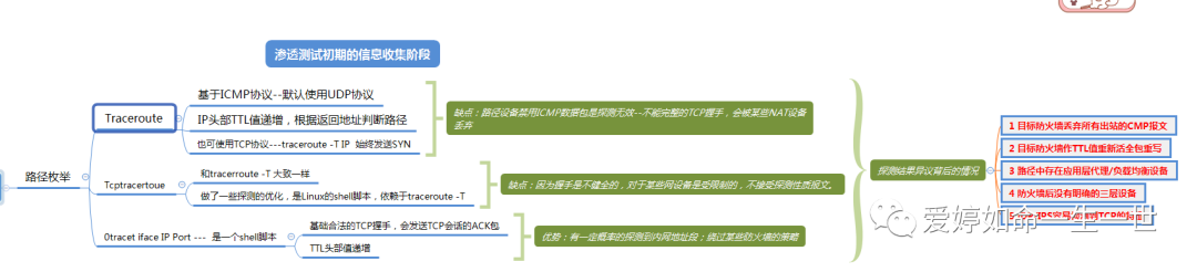 在实际的网络路径枚举中,我们需要借助这三条命令尽量把目标网络的路由节点给融合出来,当然所有的路径枚举命令也有不足:
