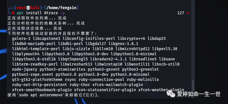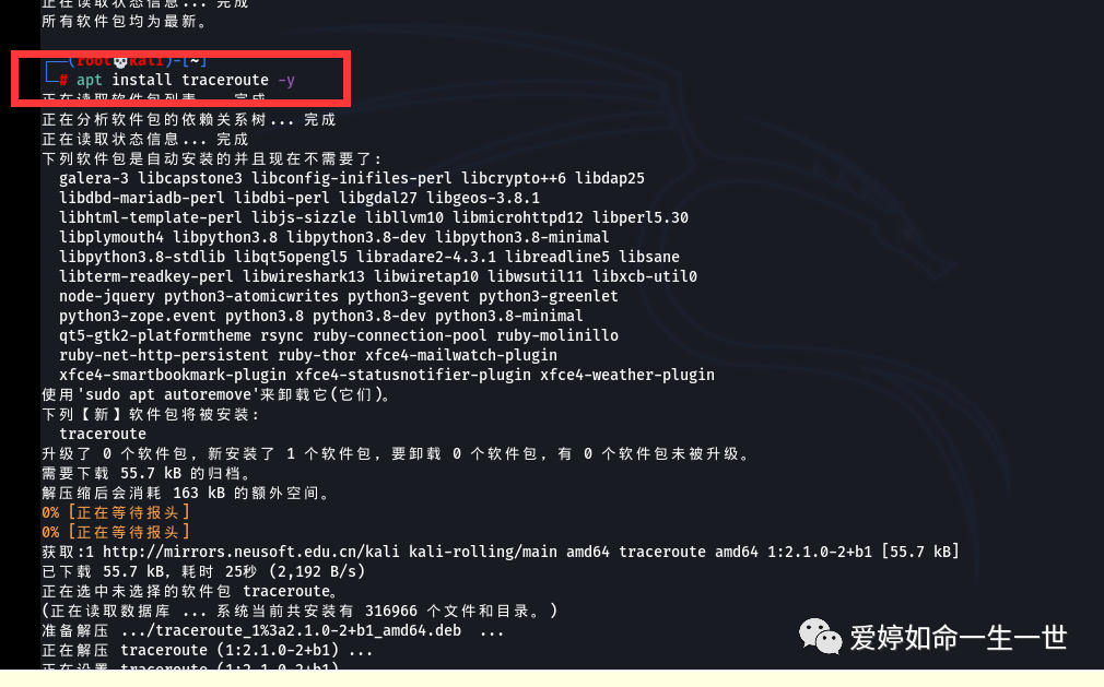 2021版的kali linux是没有安装tracertoute ,因此需要安装一下