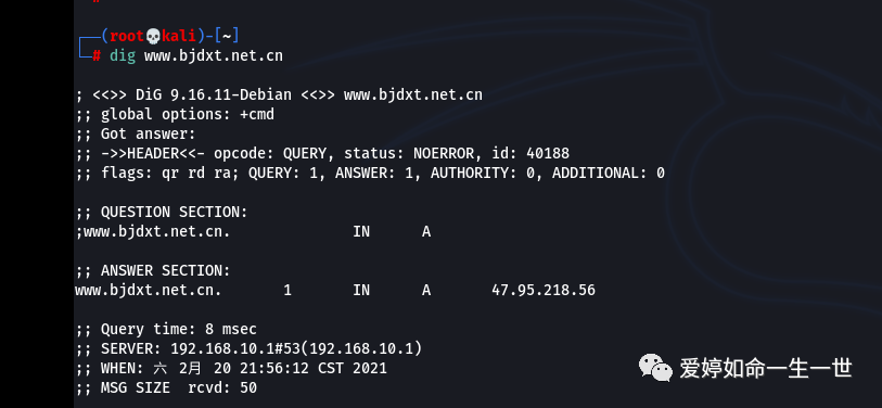 先探测一个网站 ,在探测一个网站前,先用dig命令解析下这个IP地址没从途中能看到一个A记录