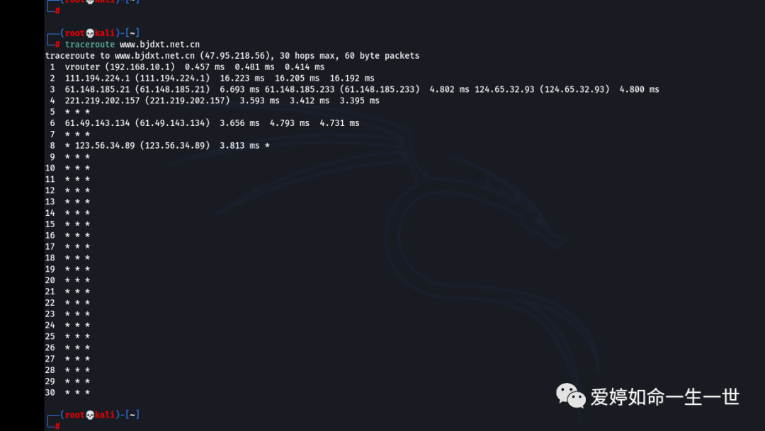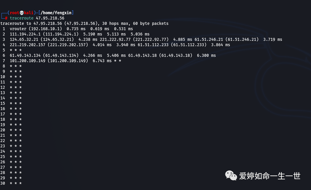 这条命令建议多执行几次,会把完整的路由节点给探测出来!