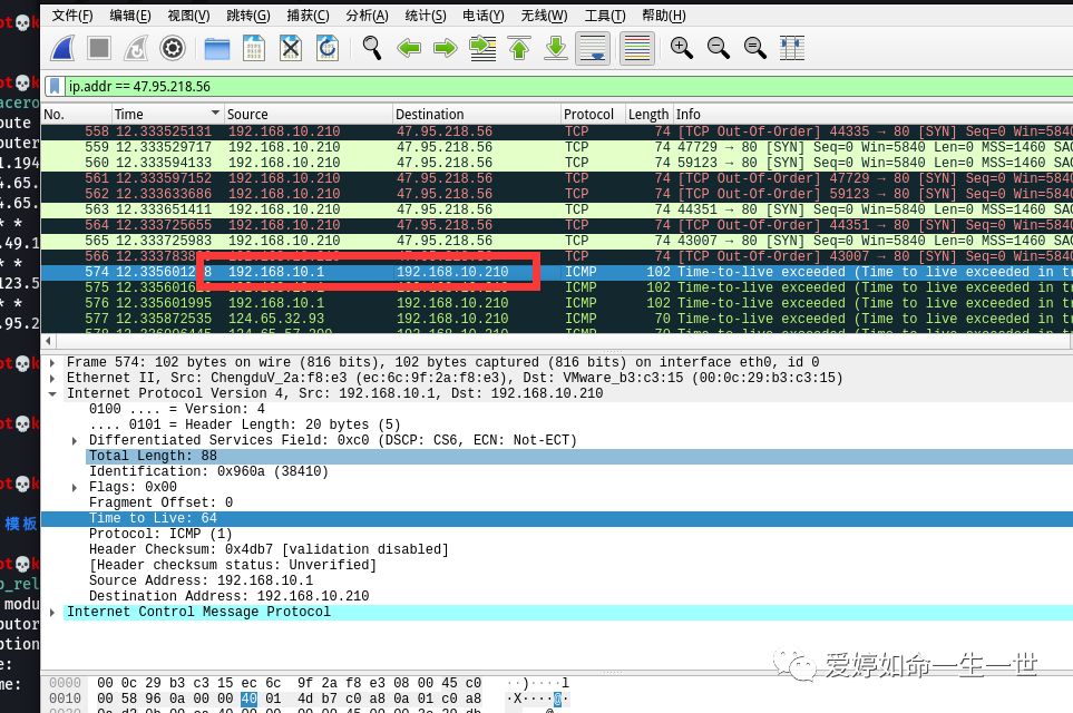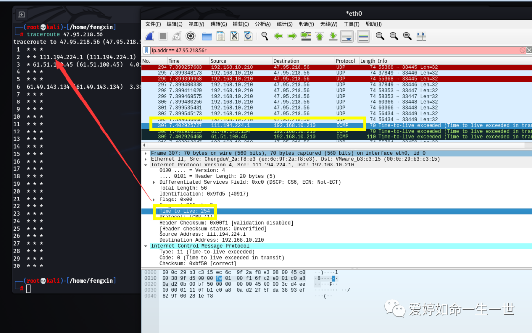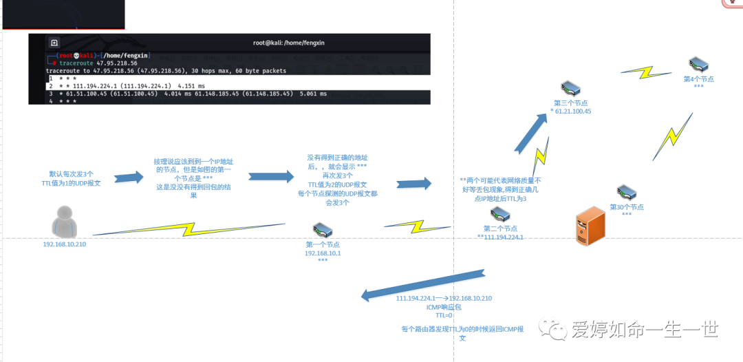 甚至可以通过ICMP报文中的TTL数值为0,就可以确定路由设备返回的ICMP报文,找到路由设备的IP地址