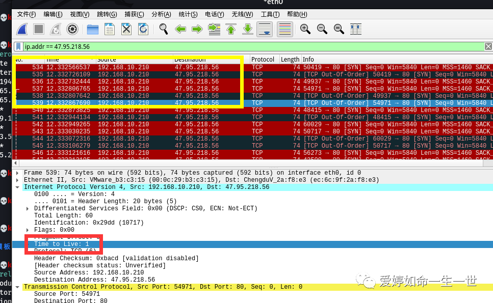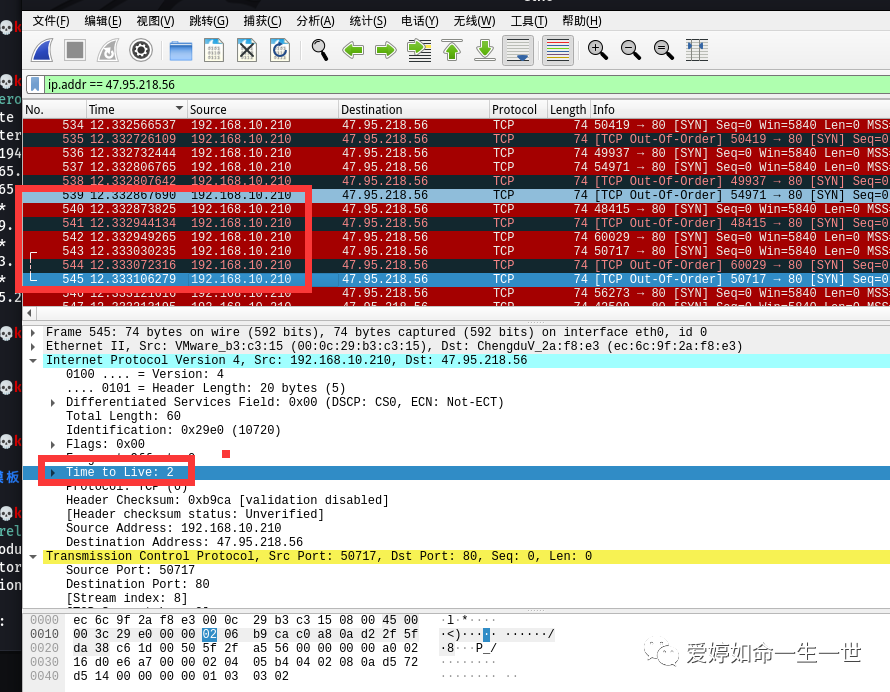 利用wireshark来抓包看看,在抓包工具中,针对目标IP地址过滤