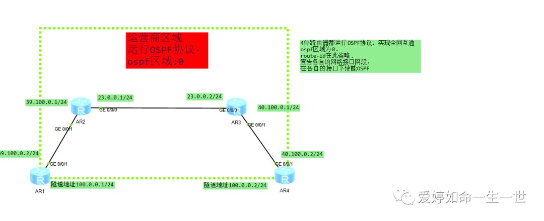 图中,R2/R3路由设备为运营商角色,R1和R4进行“局域网互相通讯”时,会产生一条虚拟隧道,R1和R4两台设备根本不可能直连!走的实际物理链路就是R2-R3运营商的物理链路!