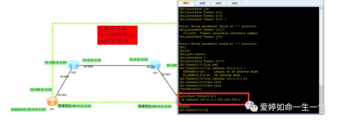 [R1-Tunnel0/0/0]ip address 100.0.0.1 24