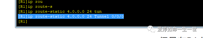 再次查看R1路由表:明显的看到4.0.0.0这条路由条目的接口地址为tunnel0/0/0
