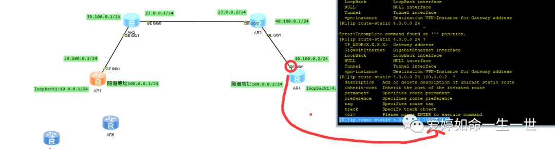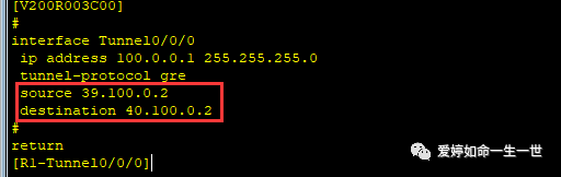 [R1-Tunnel0/0/0]destination 40.100.0.2 (一定要和描述的单词区别开来!)