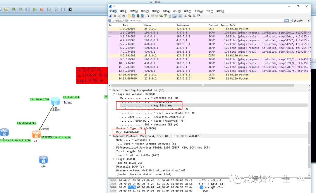 配置关键字验证后,R1和R4不会对所有收到的GRE报文都进行处理,只会处理与自身建立的GRE隧道的对端设备发来的GRE报文,如图所示:这个功能是由Key字段来实现!