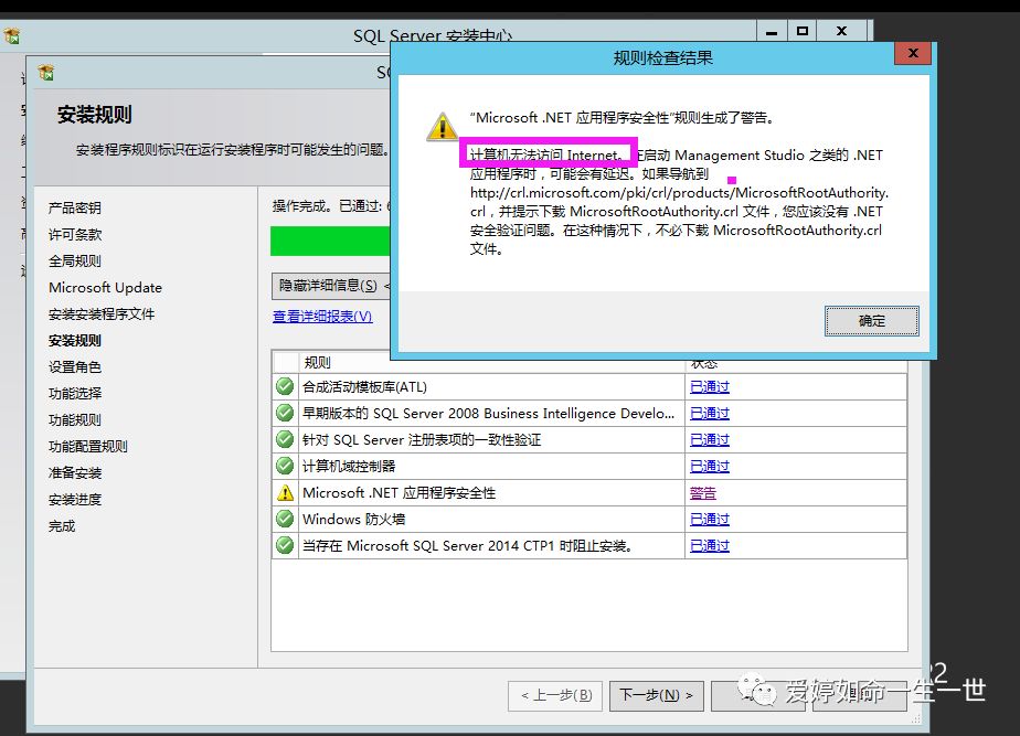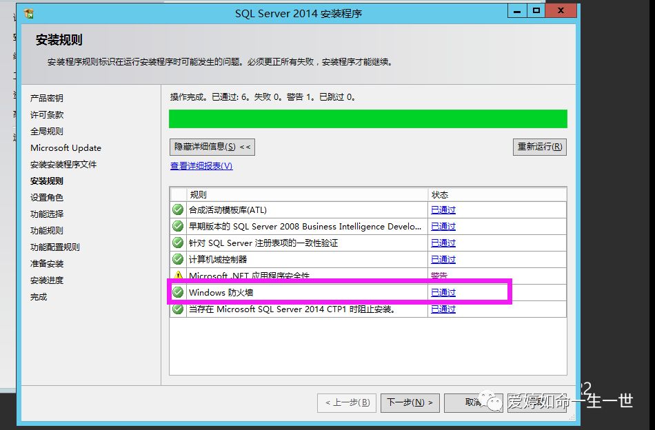SQL2014的安装向导总体来说是要比2008和2012快很多。在安装规则中,这里建议提前关闭防火墙!
