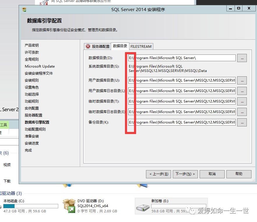 除了配置管理员账号之外,还需要对数据目录安装路径的磁盘进行规划,这里的数据文件占用容量会很大!