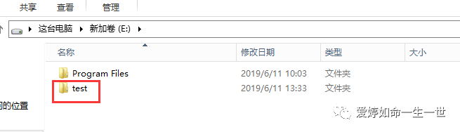 先将实例的数据目录定义好:在E盘中创建一个test文件,为存放全新的实例做准备。