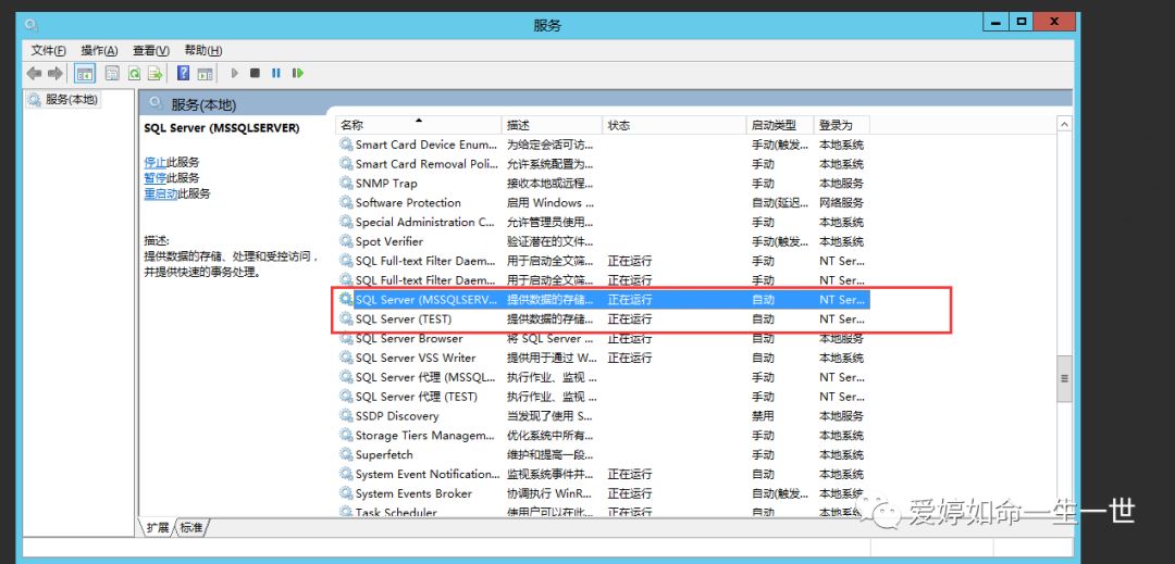 实例本质上来说是对应的后台服务:你开一个实例就对应一个SQL服务,你开两个就对应两个SQL服务,如图所示:图中我开了两个服务,所对应的后台服务就开启了两个sql服务!