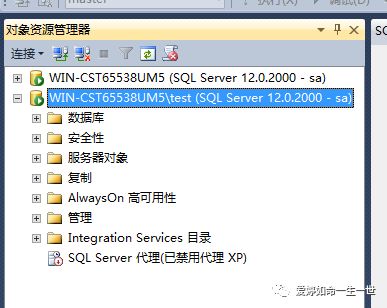 后台对于的sql server服务名称TEST,如果此服务器的计算机名称为WIN-CST65538UM5 只要通过默认的计算机名和实例名称可直接访问!