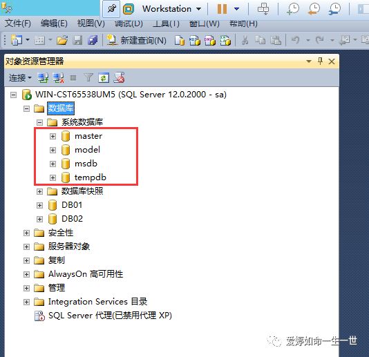 连接到默认实例之中,在系统数据库下面有4个数据库,这4个数据库是系统默认的数据库,不论是SQL什么版本,只要安装好,这4个数据库就是存在着的!