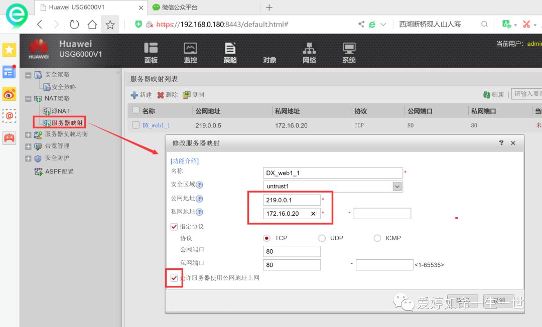 按照拓扑,将DMZ区域中的server5映射给219.0.0.1这个公网IP地址。