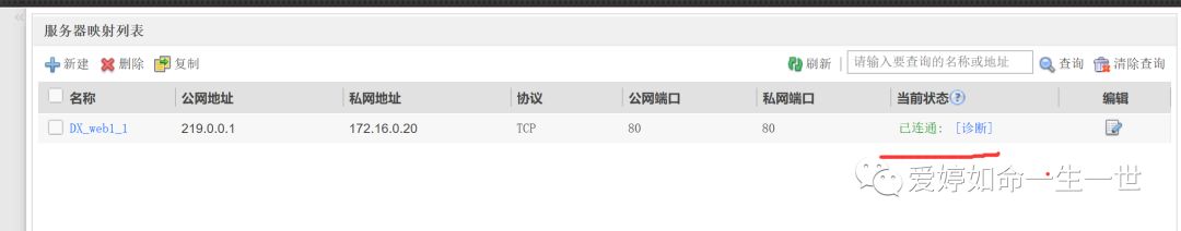 服务器映射配置如下:一定要诊断测试连通性,如果不成功检查安全策略是否放行loacl到dmz区域的策略。
