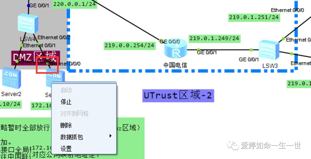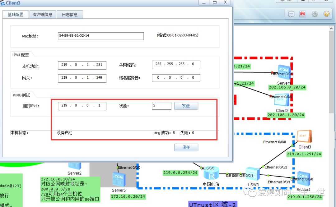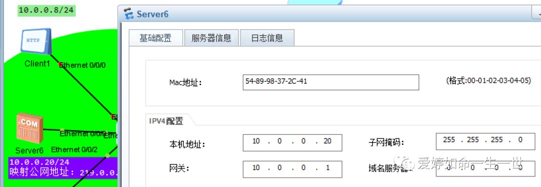 我现在在拓扑中,先演示一个静态NAT一对一的映射,将server5映射一个219.0.0.1这个公网IP地址。