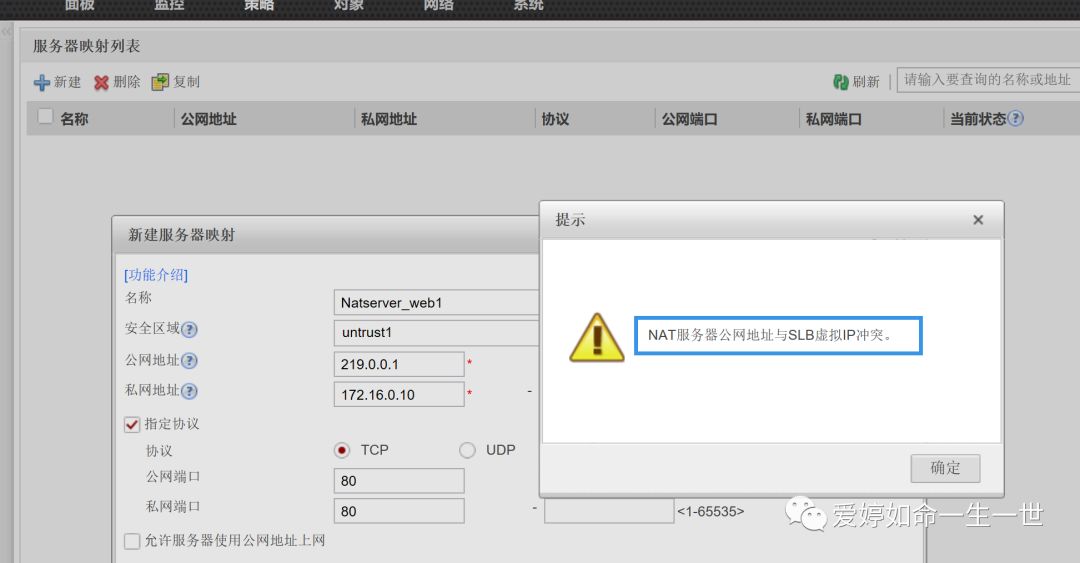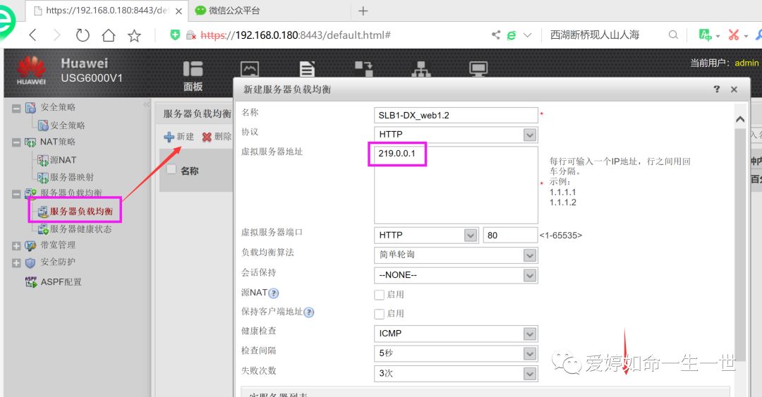 新建一个服务器负载均衡,助理这里面的虚拟服务器地址填写的是公网接口的地址,也就是实验拓扑中219.0.0.1这个地址。