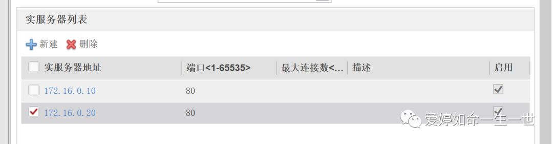 实服务器列表中我们要填写内网的两台服务器地址,最大连接数根据你之前的策略而定。
