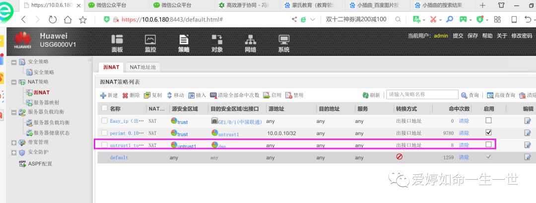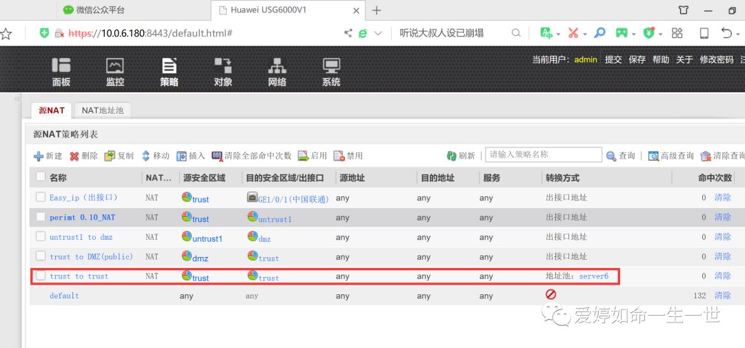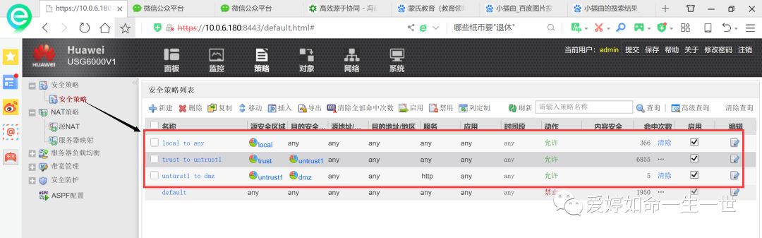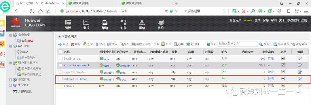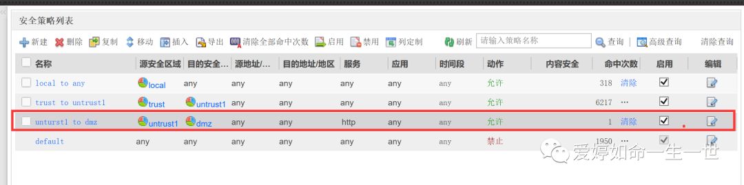 如果还是访问不成功,还要注意添加的是untust区域到dmz区域的明细流量(这里指Http流量)是否为放行。