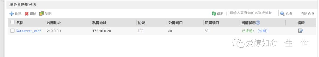这张表能发现,外网的任意地址访问219.0.0.1都通过80号端口传输转换给172.16.0.20。