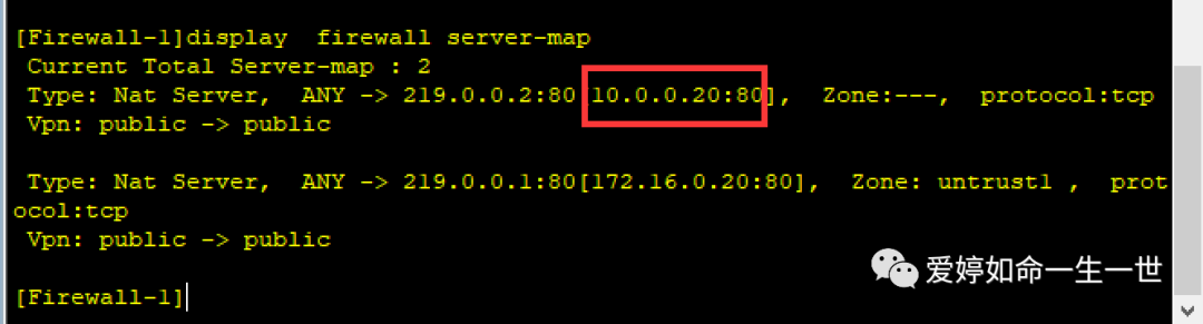 防火墙收到这个报文后,查看自己的server-map表如图所示: