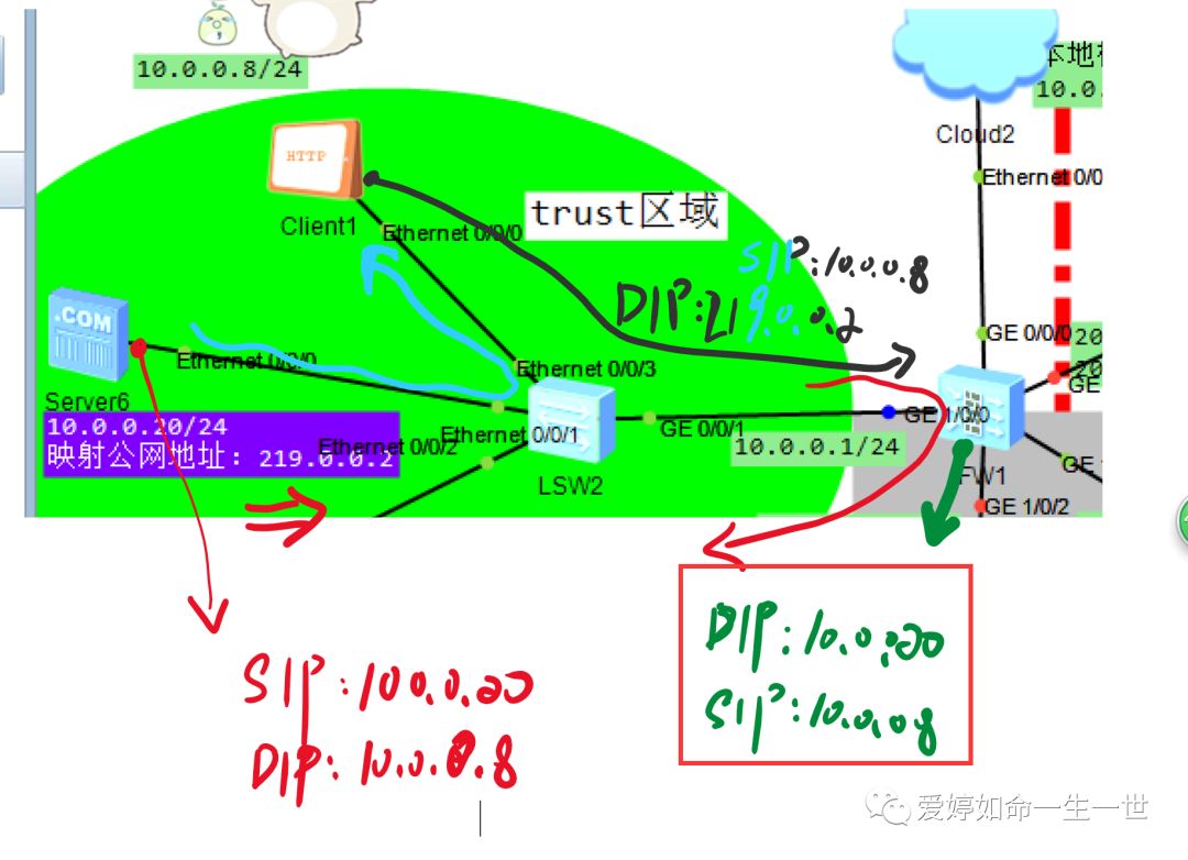 涉及到双向NAT的一些概念,我这里要强调一下:
