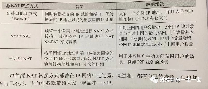 在分享NAT地址池之前,我们要知道源NAT转换的方式包括很多,如图所示: