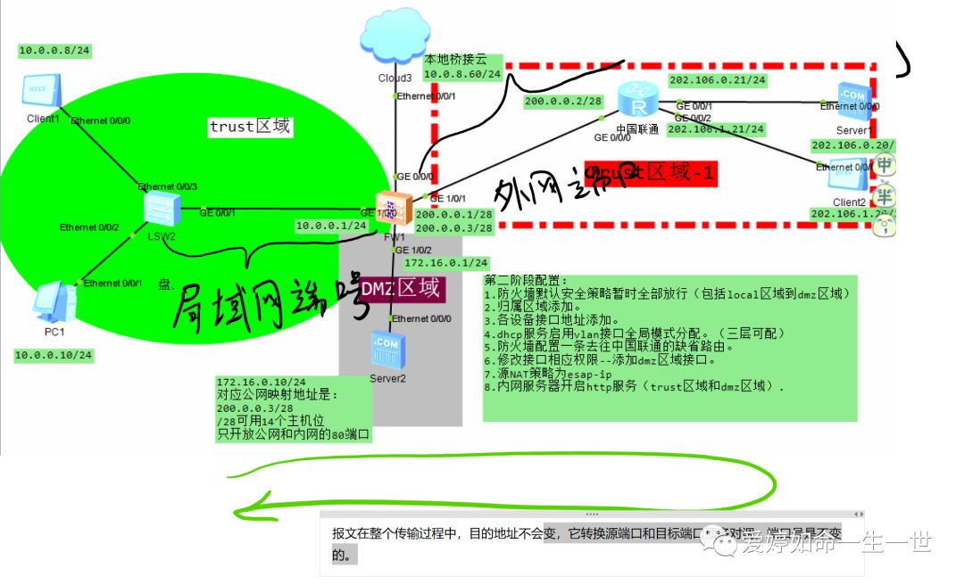 针对图中的Easy-IP这种转换方式,是比较常用的,利用端口号来区分内网不同的客户机,端口号有会随之进行转换,是NAPT的变种。