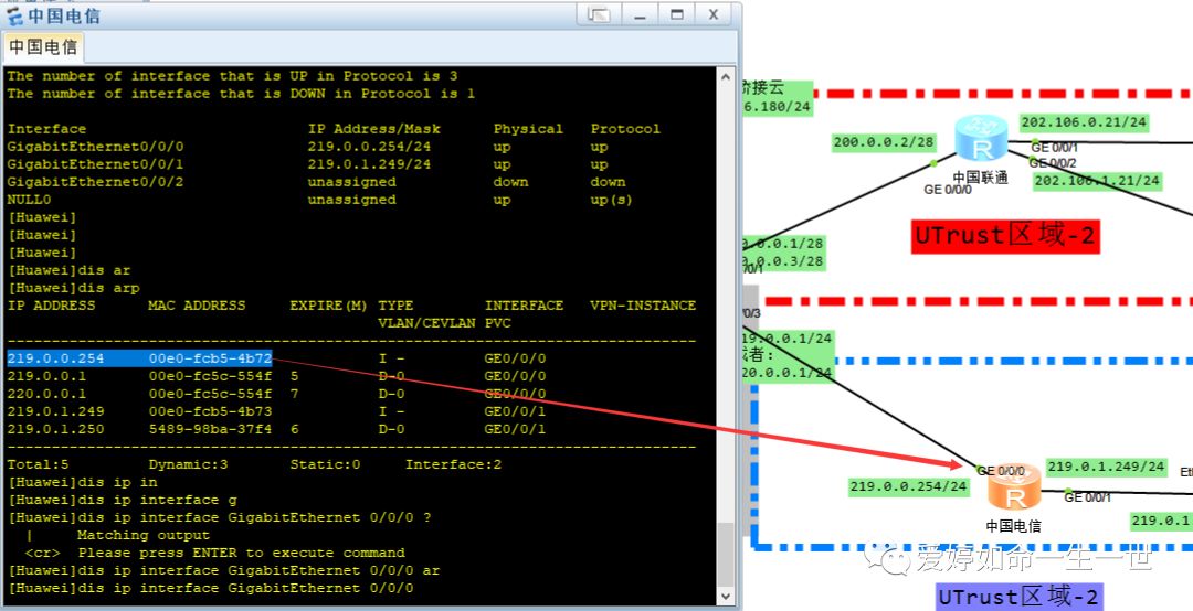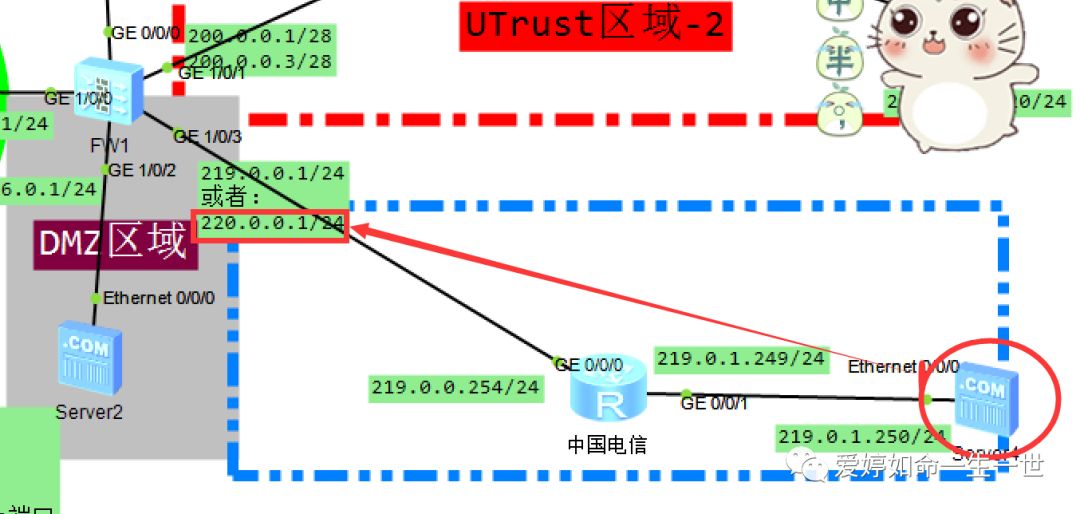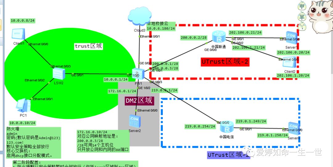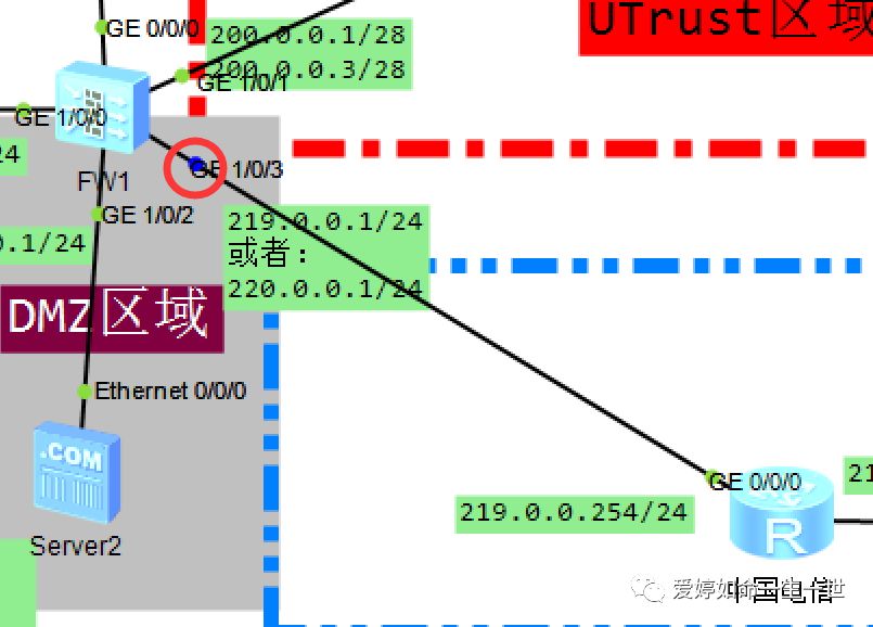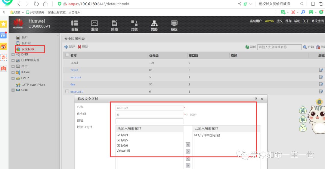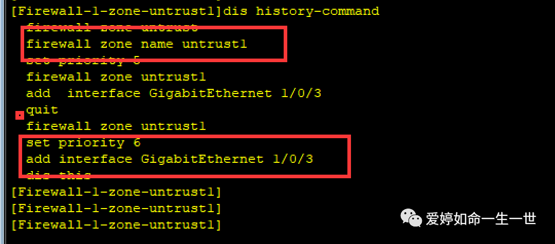 这张图中存在两个Utrust区域,所以,我需要在防火墙中在定义一个untrust1的区域,命令行如下: