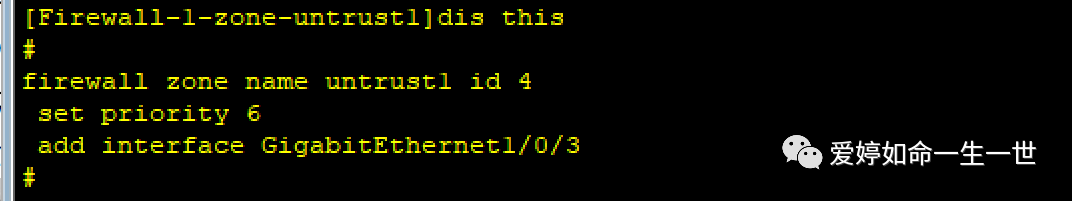 [Firewall-1-zone-untrust1]add interface GigabitEthernet 1/0/3