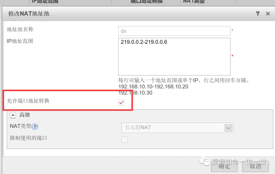 站在华为防火墙的地址池配置页面中,我们可以看到这个选项:不勾选允许端口转换的话,源端口不能转换的话,问题会出现在不同用户之间会发生端口冲突!