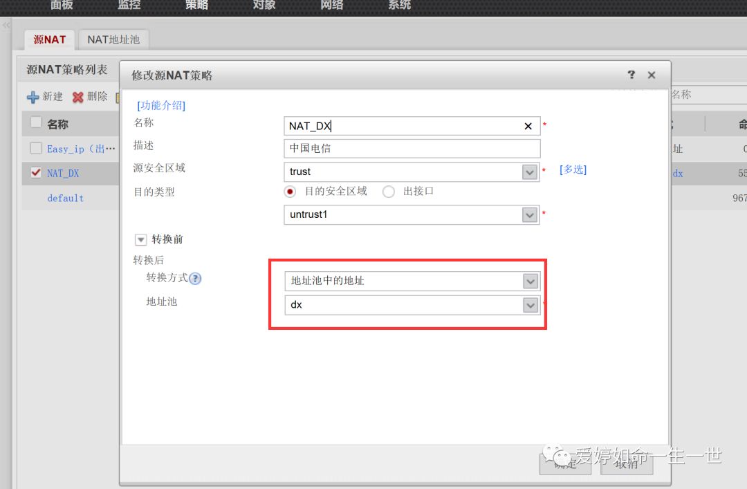 最后,我们还是要修改回源NAT策略中地址池的方式:
