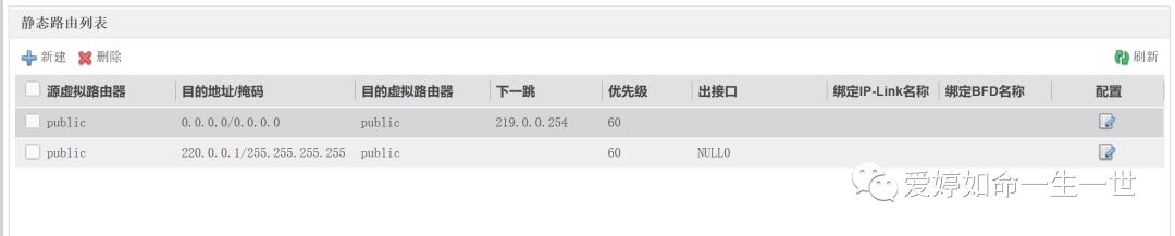 这个Null0口,我们叫做垃圾接口,作用就是:当外网用户Ping这个地址,设备会把这个报文送到这个黑洞接口中去,让报文一去不复返!