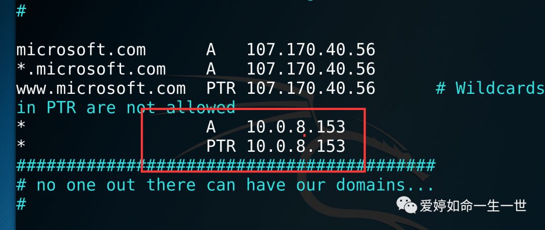 ①攻击机Kali linux修改DNS攻击文件,模拟出一个假的DNS服务。打开终端: