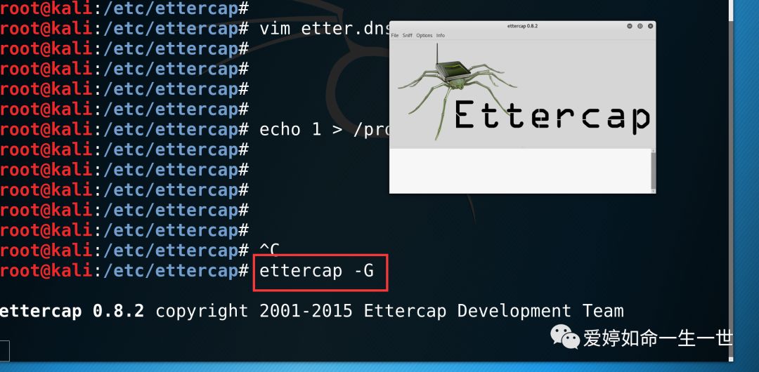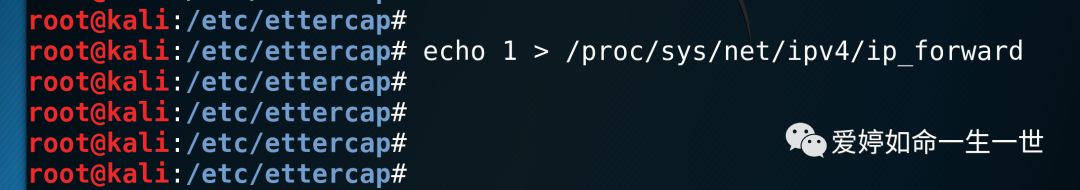 root@kali:/etc/ettercap# echo 1 > /proc/sys/net/ipv4/ip_forward