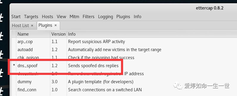 选择DNS欺骗工具,它会发送DNS欺骗回应包。