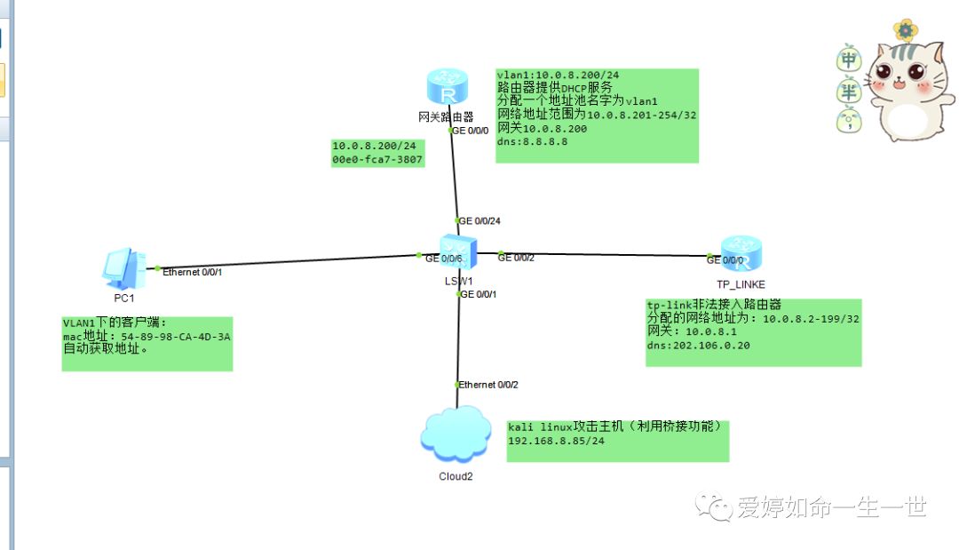 先搭建一个DHCP的网络架构,以便引出今天讨论的DHCP攻击话题。