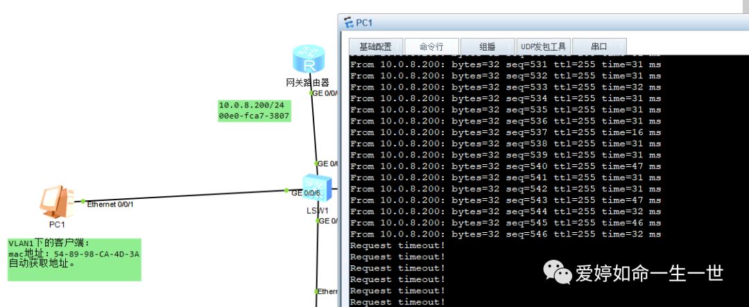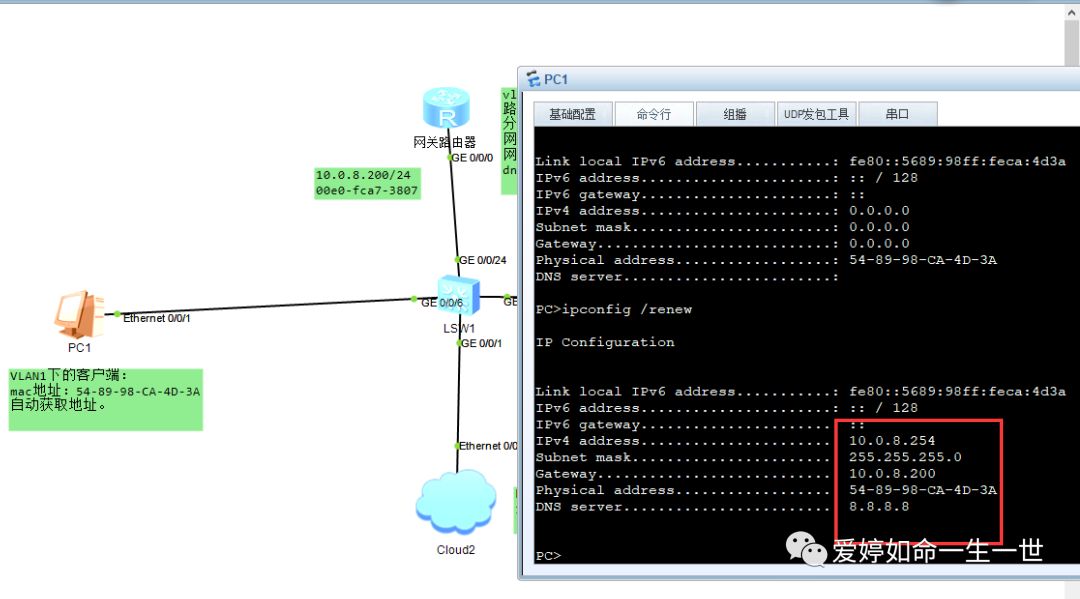 如图所示:拓扑中我让客户端释放地址后在重新获取地址。
