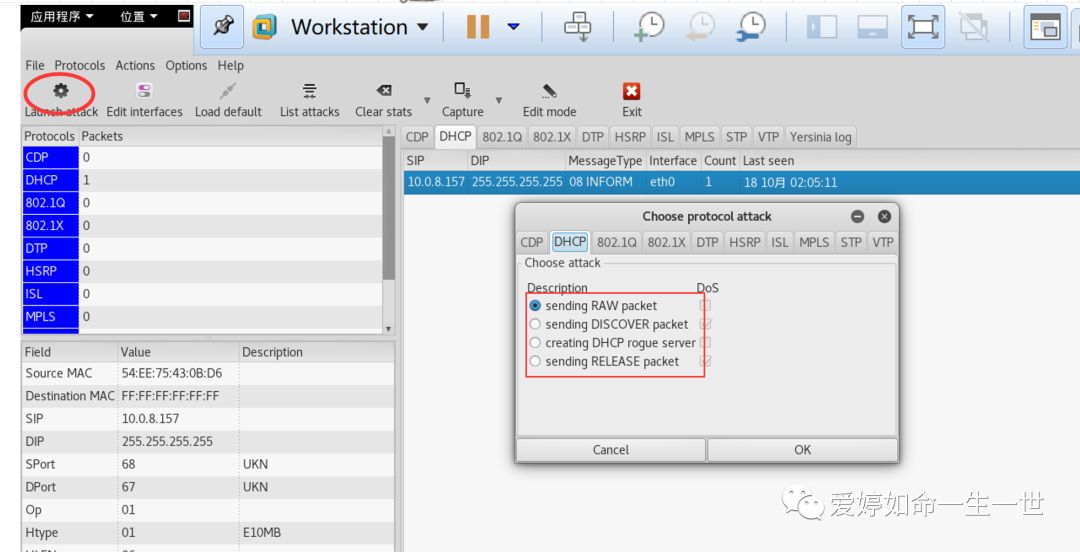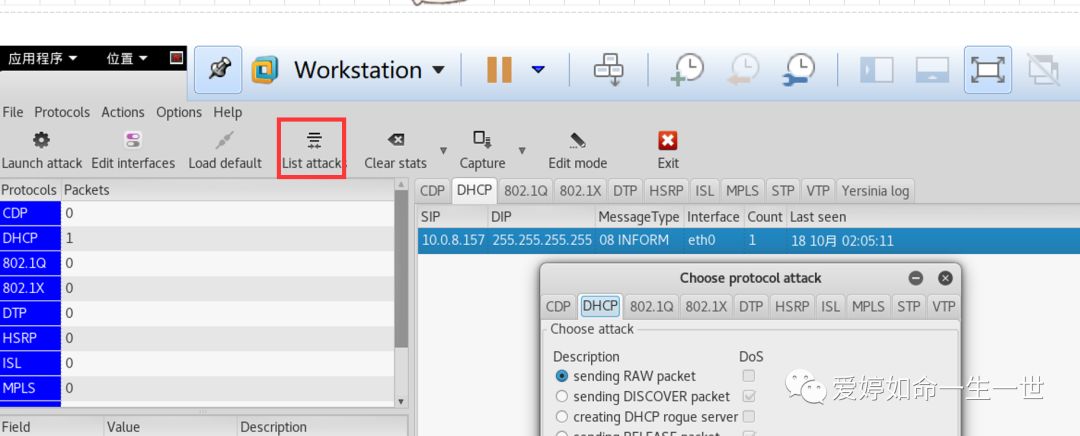 我们在图形化界面中能够看到其攻击协议很多,单单DHCP协议里面就有4种攻击方式,如图所示: