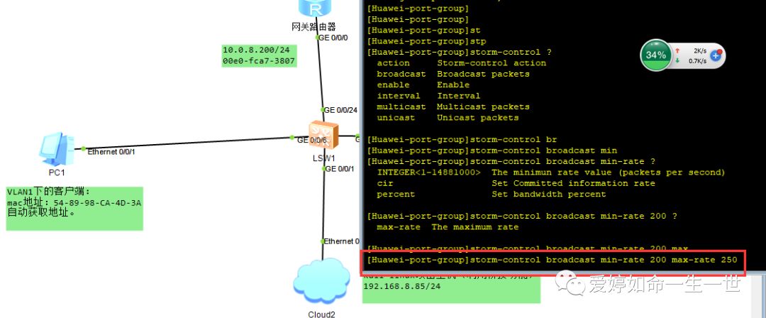 (限制进入接口的广播、未知组播或者未知单播类型报文的速率)避免设备受到大的流量冲击