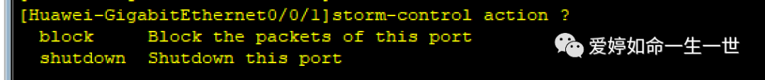 [Huawei-GigabitEthernet0/0/1]storm-control action shutdown