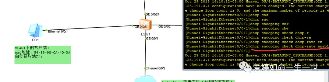 在企业生产环境中,这里的防御手段要在所有的接入层交换机上的客户端流入接口上配置针对DHCP Dos的攻击防御 ,但会对接口转发性能略有影响,鱼和熊掌不可兼得!