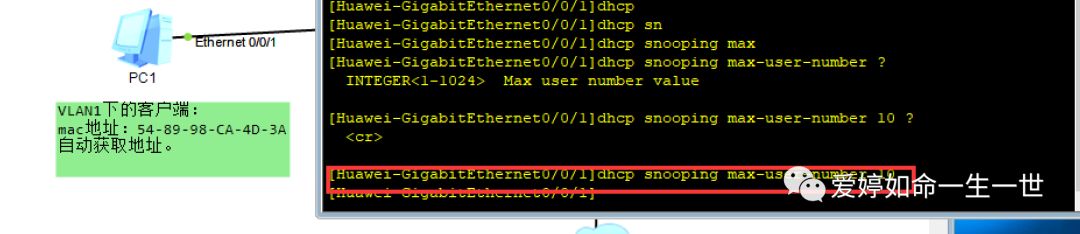 这样的话,这个接口如果接入多台PC,只允许接入10个主机,超过的就会被丢弃!(在ENSP模拟中支持的效果并不理想,不做演示。真机没有问题)