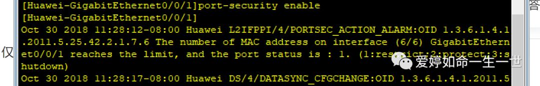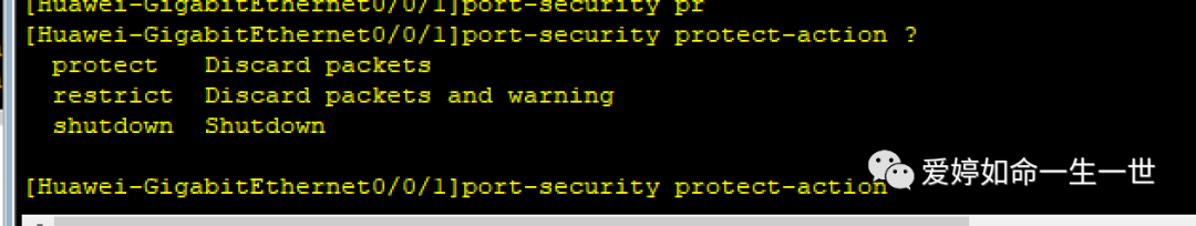 超过10个Mac地址后,我们要定义一个动作:在华为对端口安全功能采取的动作有3种。