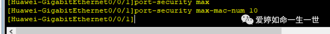 [Huawei-GigabitEthernet0/0/1]port-security max-mac-num 10