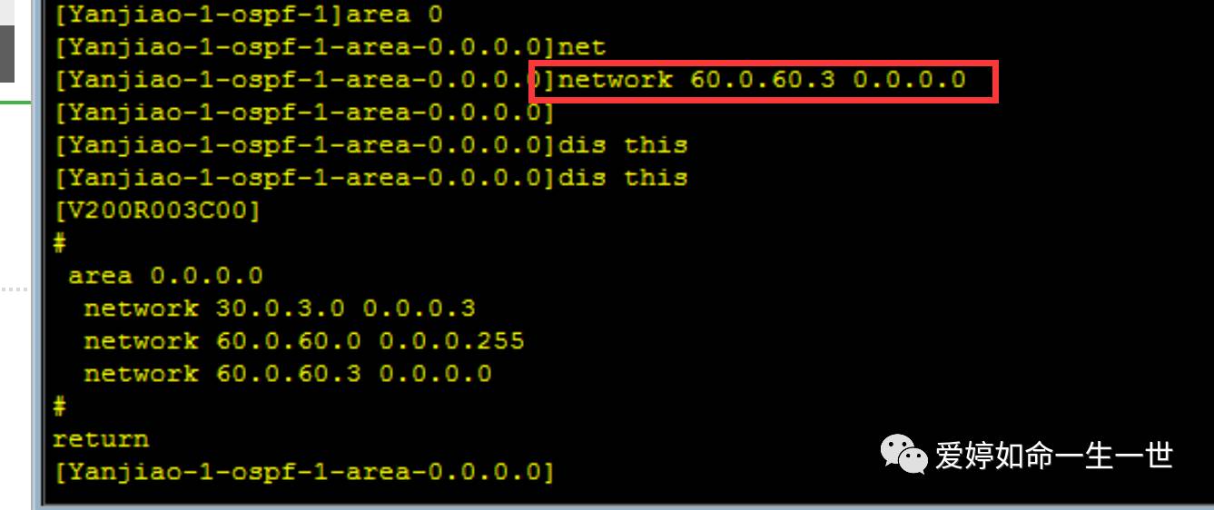 [Yanjiao-1-ospf-1-area-0.0.0.0]network 60.0.60.3 0.0.0.0